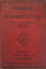 A rather earlier text I also have a copy of is The Handbook for Attendants on the Insane, which Peter Nolan tells us was first published in 1885. This was the first book produced in the UK for the express purpose of instructing people we now uniformly call mental health nurses, and was produced at the instigation of the Medico-Psychological Association (MPA). The MPA later became the Royal Medico-Psychological Association, and eventually the Royal College of Psychiatrists.