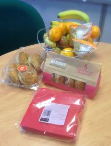 My esteemed colleague Professor Jane Hopkinson facilitates a Wednesday lunchtime research drop-in, to which people in the School of Healthcare Sciences at Cardiff University are invited. Affectionately known as doughnut meetings (see photo of today’s goodies attached), these provide a loosely-structured, supportive, space for the sharing of ideas and experiences. The gatherings are really very good: informal, but always informed. I make a point of getting along when I can.