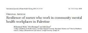 Earlier this week a new article lead authored by Mohammad Marie, and co-authored by Aled Jones and me, was published in the International Journal of Mental Health Nursing. The title of the article is Resilience of nurses who work in community mental