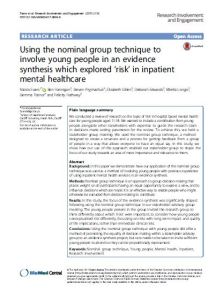In this project we were interested in risk, broadly defined, for young people in inpatient mental health settings. We used a two-stage evidence synthesis, convening a stakeholder group midway through to guide us in our focus. This new article gives the detail on the process we used when the group met.