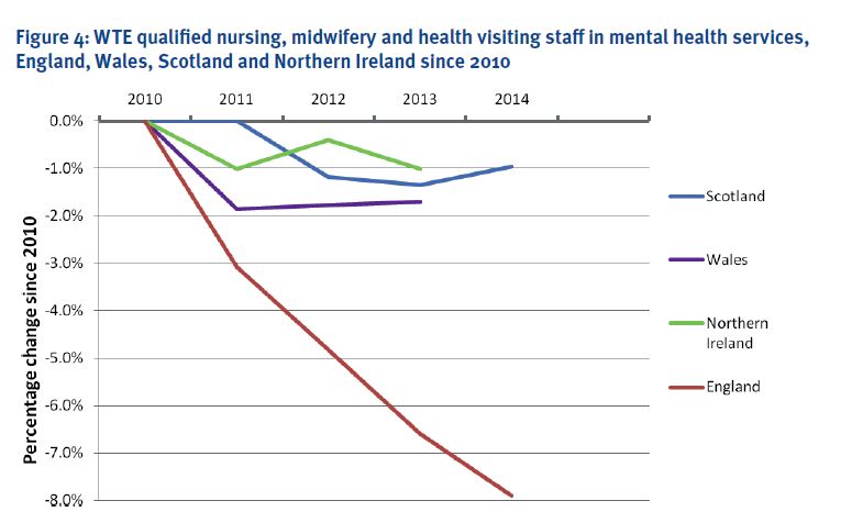 Here’s a chart showing reductions in the mental health nursing workforce, which I’ve extracted from page 16 of the report: