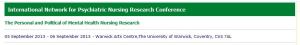 For those not at the 20th International Network for Psychiatric Research Conference, which took place yesterday and the day before at Warwick University, here are links to the conference brochure and the book of abstracts. Following this link takes you to Laura Benfield’s aggregation of #NPNR2014-tagged tweets. Laura, I hear, is moving on from the RCN Events team: many thanks to her for all the behind-the-scenes work at this, and previous, conferences.
